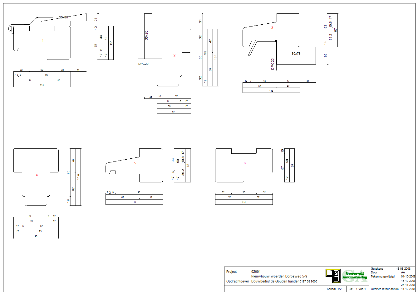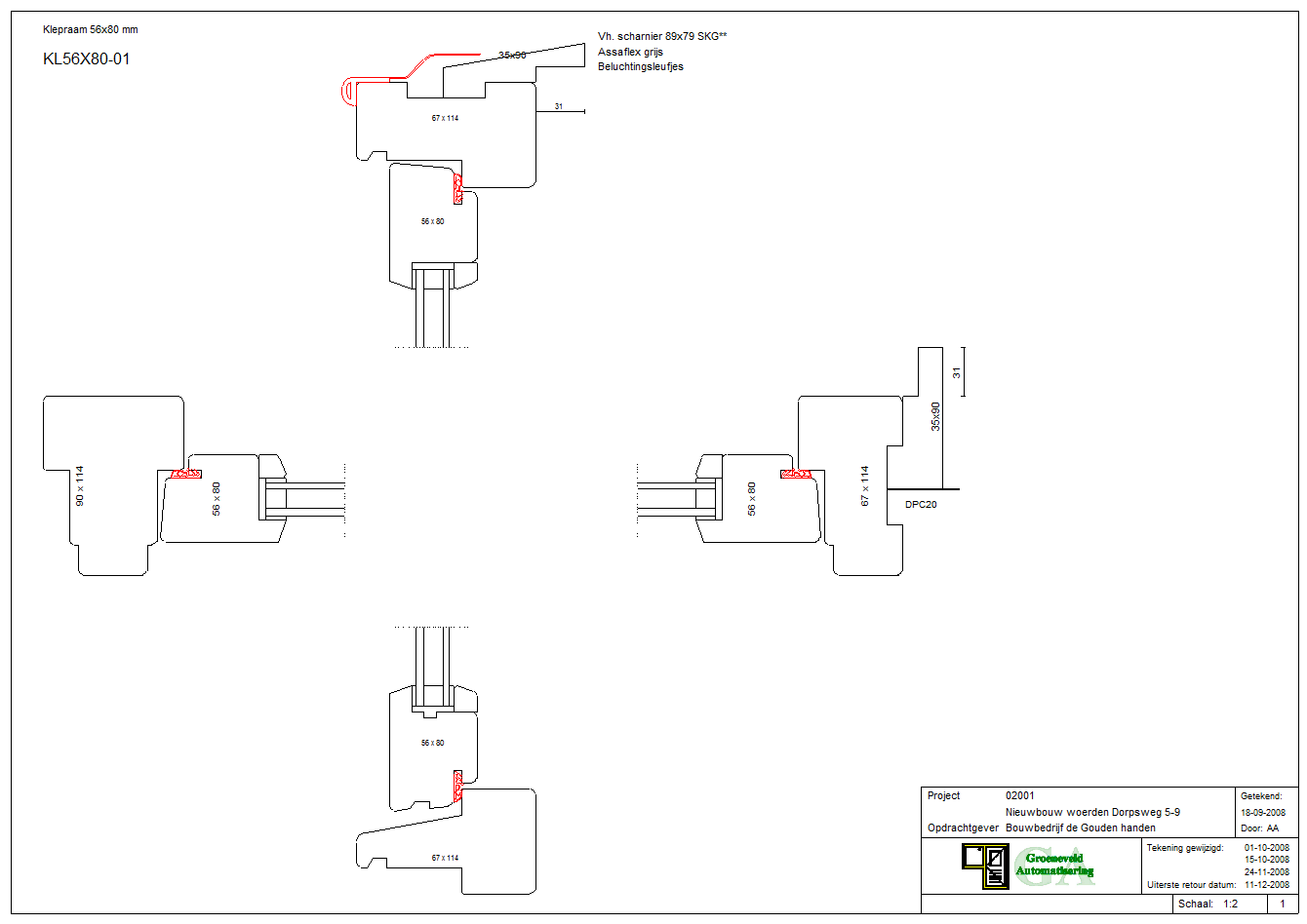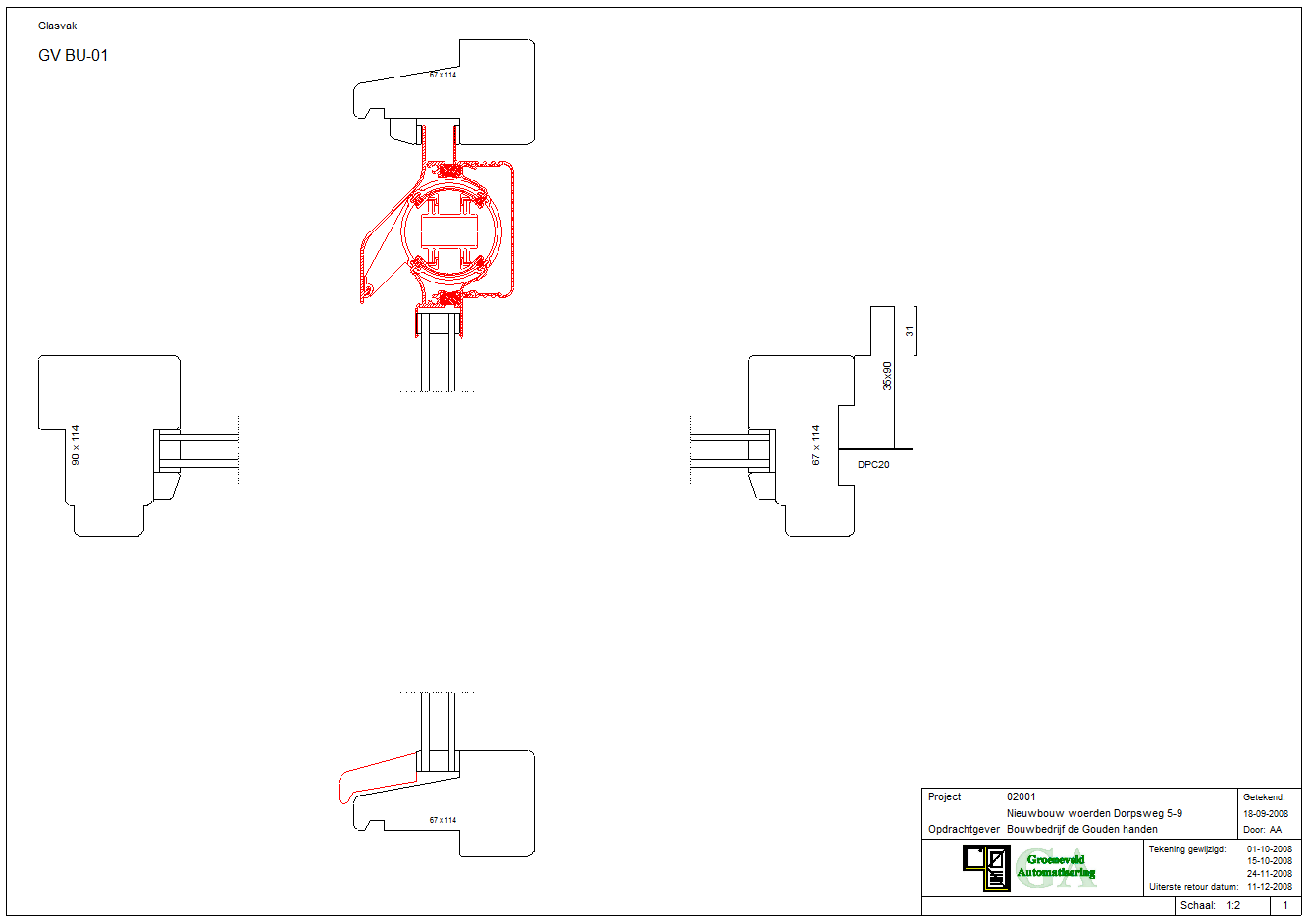 Kozijnprofiel met rand aansluitingen (zoals spouwlat, kantstuk, koppenstijl en lood) rollen automatisch uit de kozijn tekening.