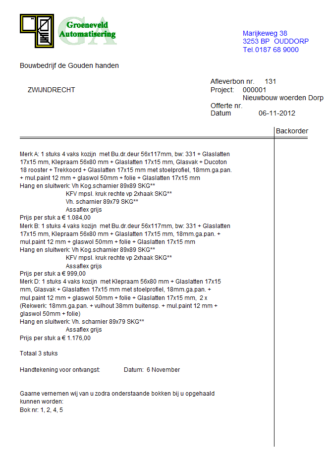 Factuur en Afleverbon (OPTIE)