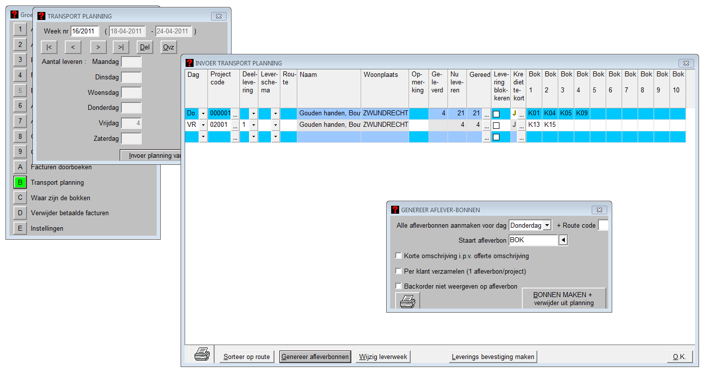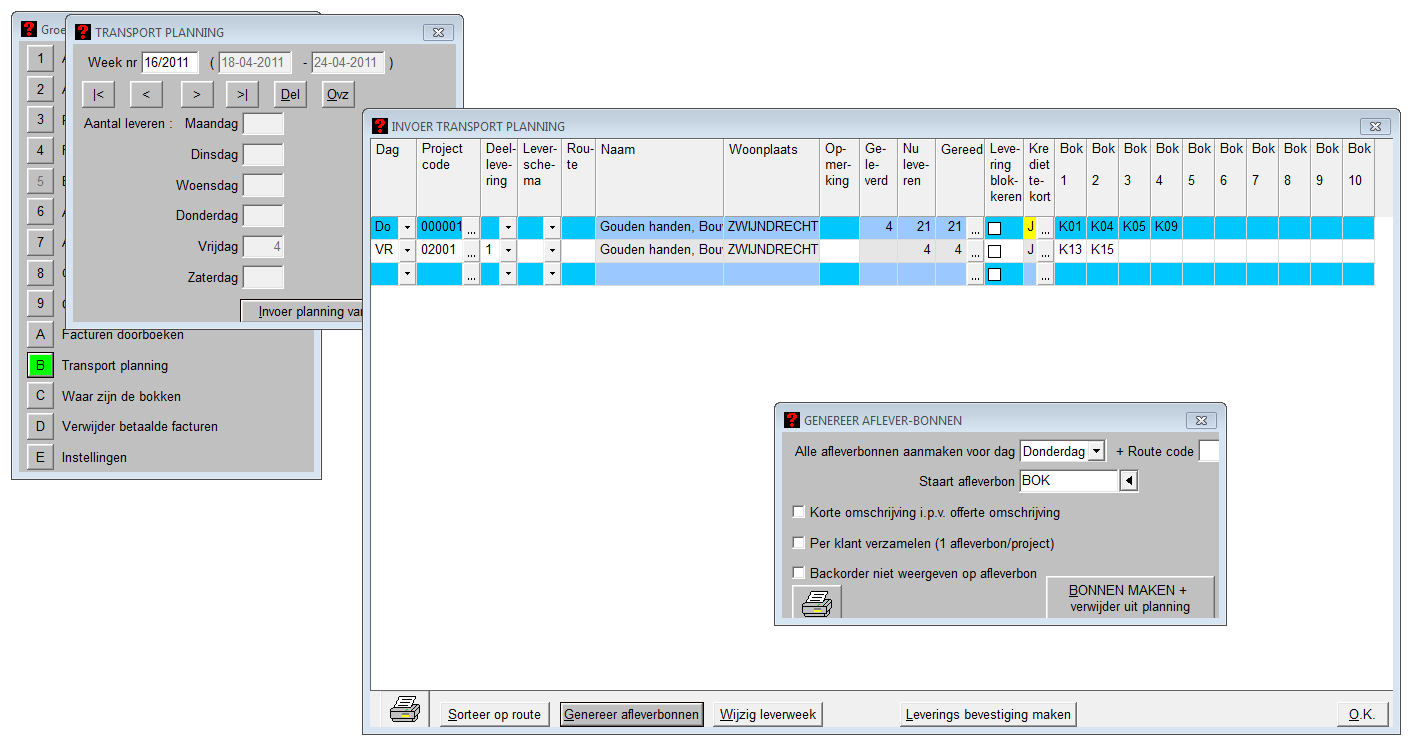 Met transport planning kan er per dag van de week gepland worden welke kozijnen weggebracht moeten worden en welke route de chauffeur moet aanhouden.
