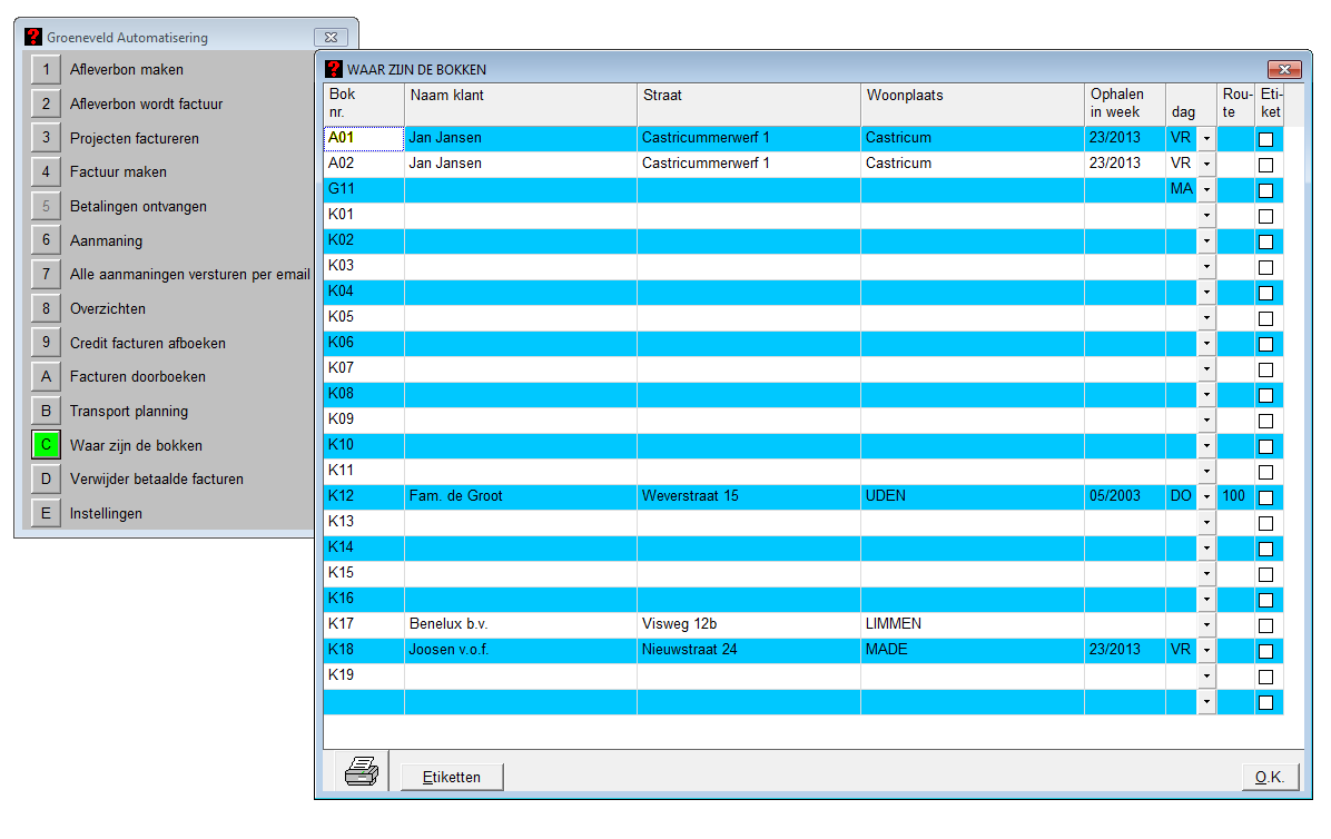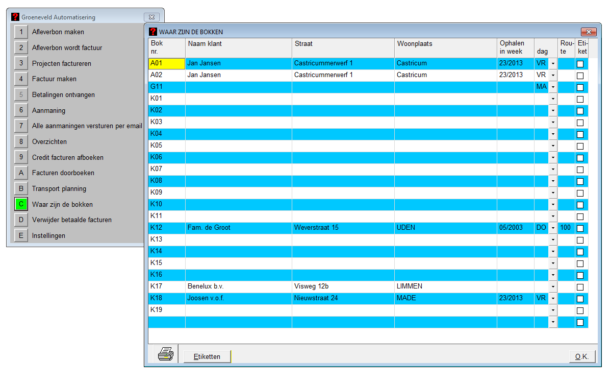 Ook kan aangegeven worden welke bokken er mee gaan met welk transport.